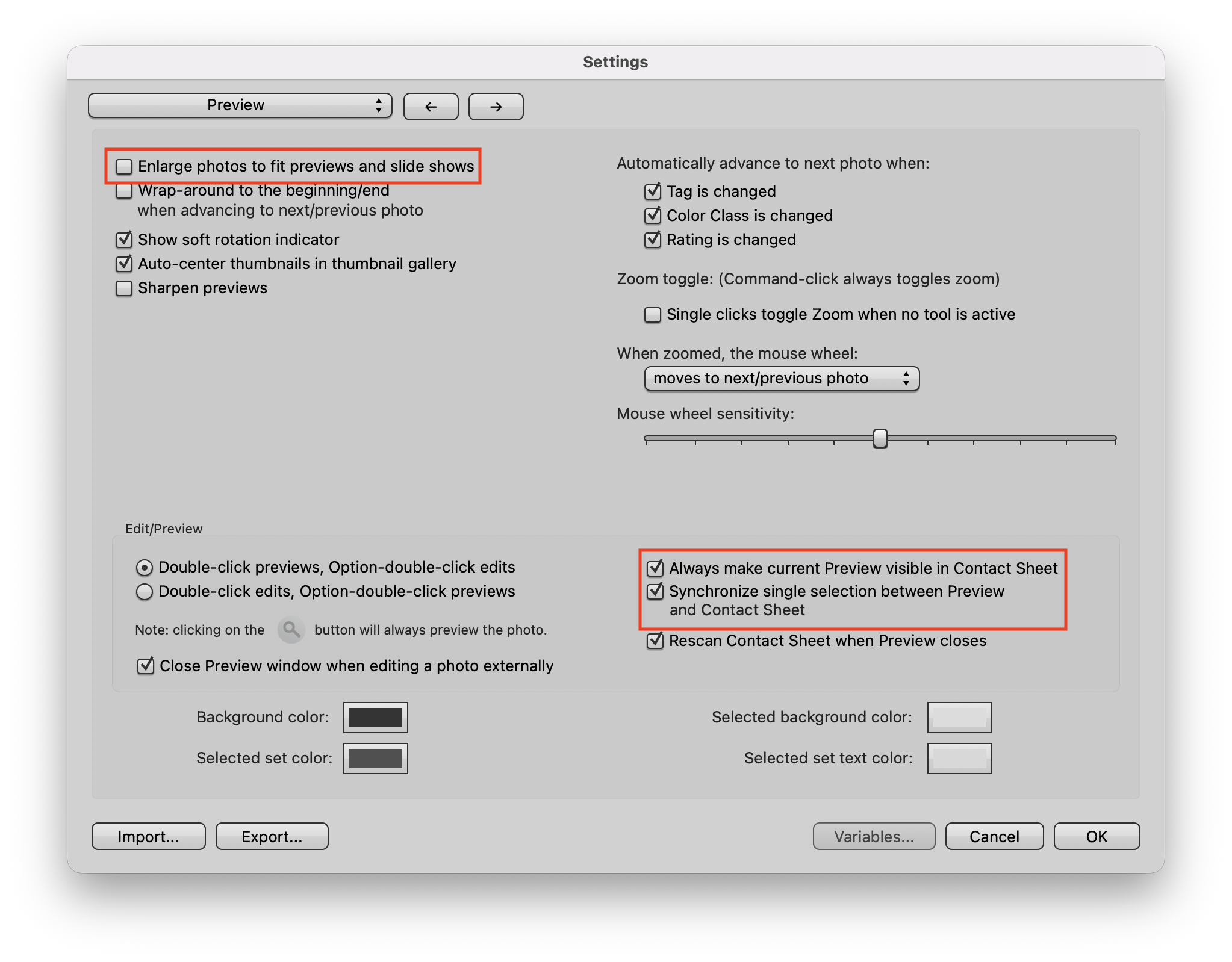 - Turn off Synchronize single selection between Preview and Contact Sheet.
